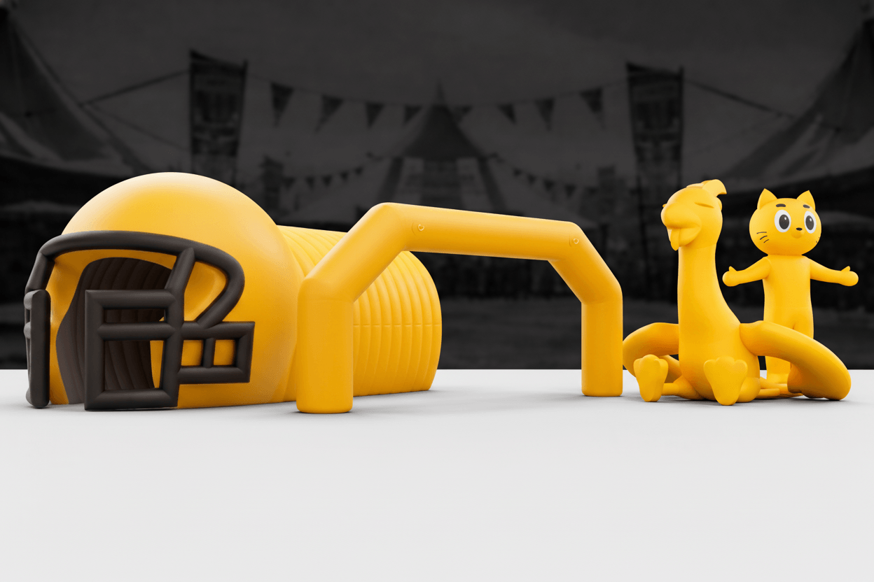 Any size, any shape, any structure: large custom inflatables, branded arches, mascot tunnels, giant product replicas, 3D characters, custom logos. If you can describe it, we can build it. Share your logo and ideas to get a free 3D mockup and exact quote. No commitment required.