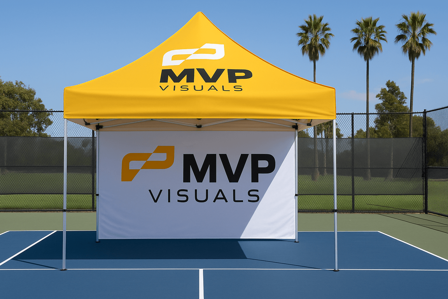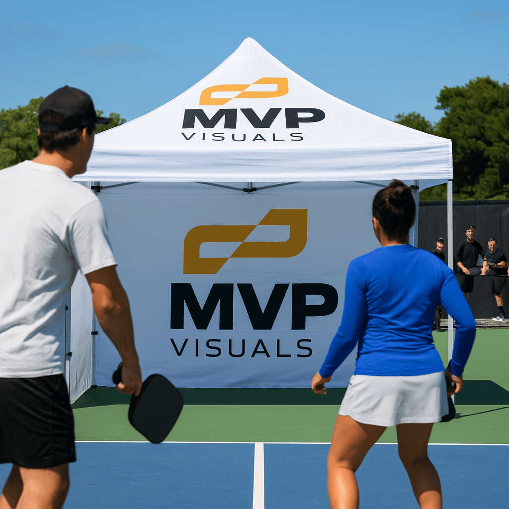 Fabric shades do their job on court, but tournaments need more. Pop-up tents can shift with the event, add space for vendors or concessions, and give sponsors visibility where it counts. Lightweight, durable, and fully brandable, they’re the most versatile display you can bring to a pickleball tournament.