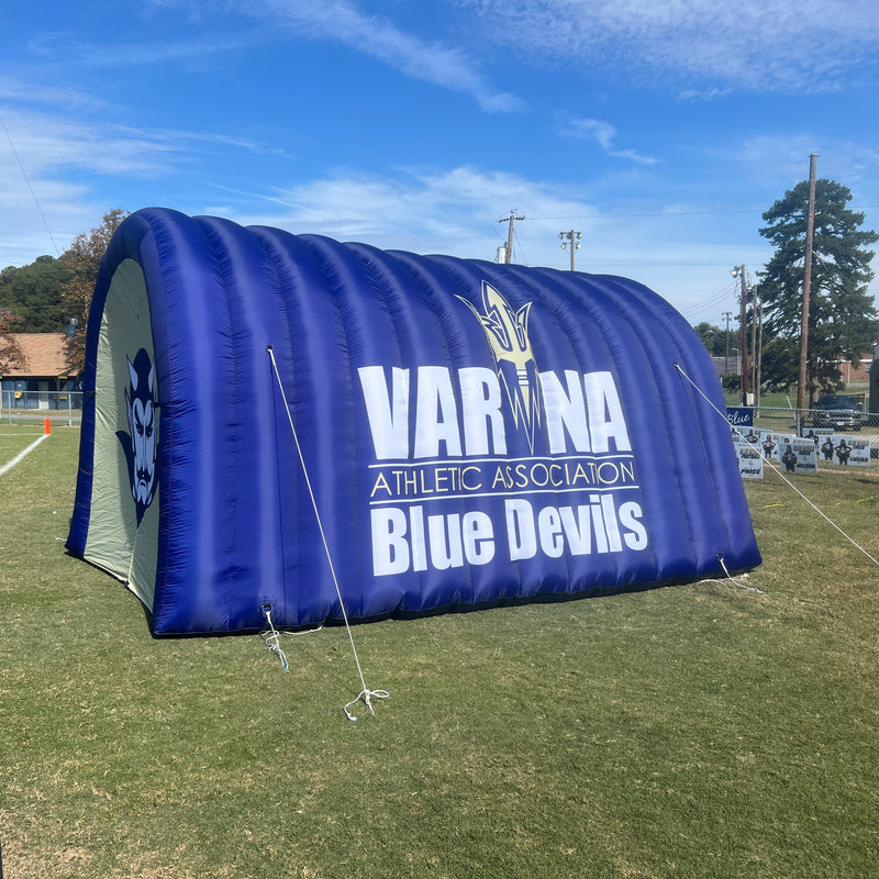 For teams with budget considerations, consider a more traditional tunnel shape in your team’s colors or with your team logo printed on the side. You could even sell advertising space on the side of your custom inflatable tunnels for football games to garner local support for your team.